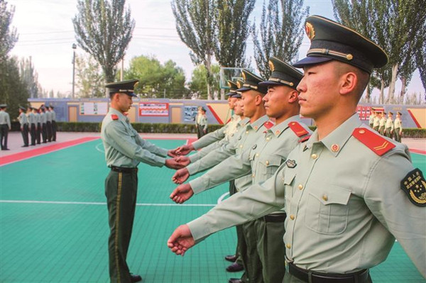 9月4日,武警固原某部组织队列训练,强化官兵作风纪律。