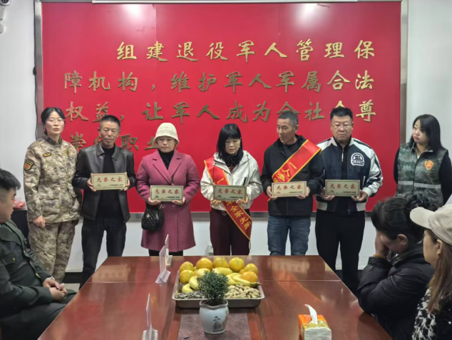 活动中,为2025年秋季新入伍的现役军人家庭集体颁发光荣牌。在场的老兵们带着殷殷嘱托和闪有荣光的“光荣之家”交到新入伍军人的家属手中,通过集体发放光荣牌这个仪式让军属们更加感受到了组织和大家庭的温暖,也更加感受到了“一人参军,全家光荣”的荣耀。会上退役军人服务站站长也表达了对军人军属们的崇高敬意,并安排乡村两级工作人员共同为需要悬挂光荣牌的家庭逐人逐户上门悬挂。