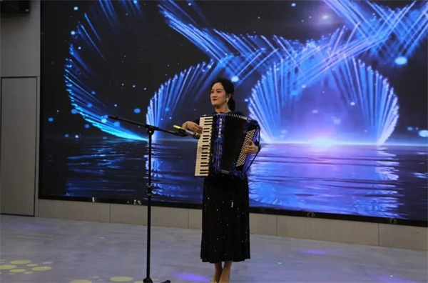 舞台上,光影交织尽展军民风采。利通区文化馆带来的器乐手风琴演奏气势恢宏,激昂旋律直击人心,瞬间点燃全场氛围;他们用饱满的热情诠释军民双拥的热烈情怀,赢得台下观众阵阵喝彩。