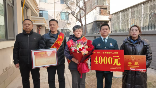 2月3日,金凤区退役军人事务局联合人武部、北京中路街道及锦绣苑社区,为荣立二等功的现役军人李渊家属送上立功喜报与家庭奖励金,把党和政府的深切关怀与崇高敬意送到军属心中。