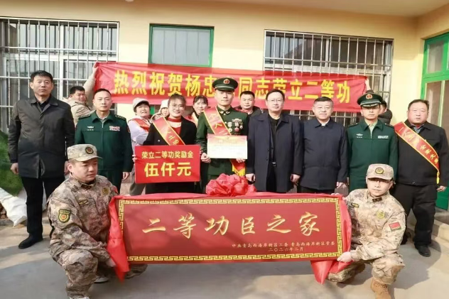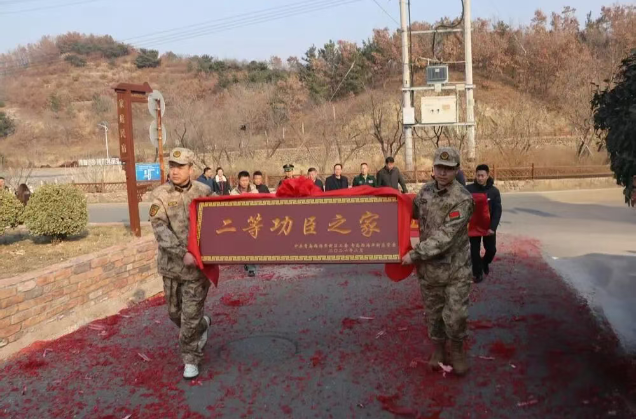鲜红喜报,映照功臣拼搏足迹,闪亮牌匾,承载全家无上荣光。为弘扬拥军优属光荣传统,激励广大官兵献身国防、争当尖兵,近日,武警宁夏总队某部联合地方相关单位组成“报喜团”,将“二等功臣之家”牌匾、立功喜报和慰问金,共同送到山东青岛大下庄村武警二级上士杨忠光的家中,并亲切慰问军属。