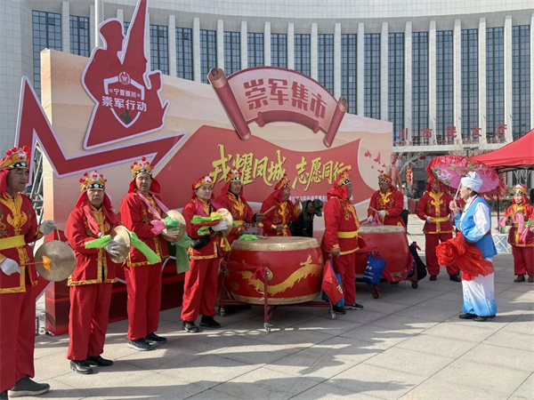 锣鼓喧天,汤圆甜糯,戎耀闪耀,志愿正红。3月2日,由银川市退役军人事务局主办的“戎耀银川 志愿同行”3月份崇军集市暨学雷锋主题活动在市民大厅门前广场暖心举办。本次活动将常态化“崇军集市”品牌与学雷锋志愿服务深度融合,通过特色社火展演、暖心汤圆派送、便民惠民服务、政策宣传咨询等形式,为广大现役军人、退役军人及市民群众献上了一场有温度、有年味、有情怀的“学雷锋+崇军惠民”春日盛会。