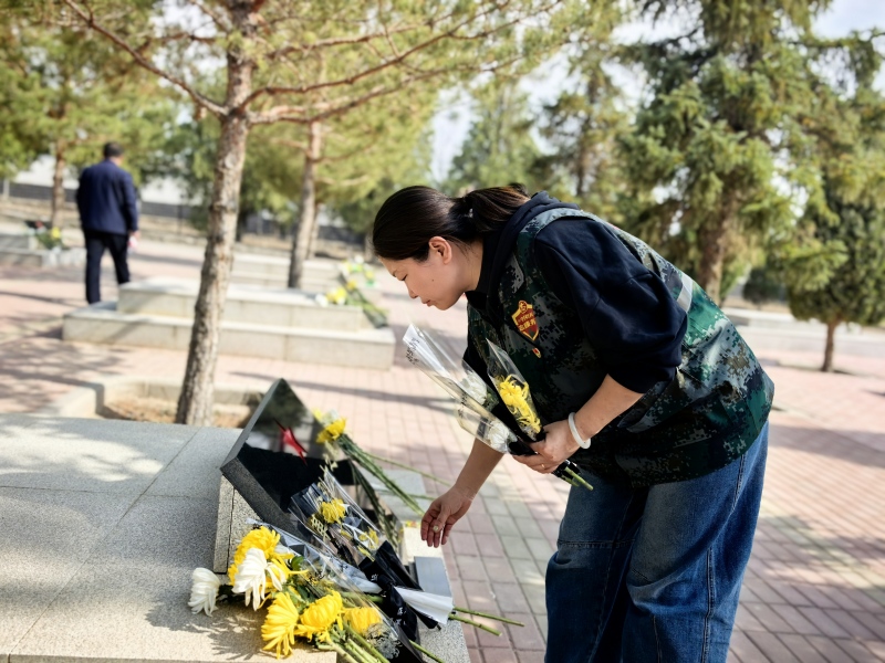 在罗永林烈士墓前,东胜社区退役军人服务站站长深情讲述了一段“身边的英雄故事”:罗永林烈士牺牲于1953年抗美援朝战场,年仅28岁,其子当时仅3岁,如今已是76岁老人,就住在石嘴山市第十三小学后面的院子里。“英雄从未远去,就在我们身边。”随后,大家参观了贺兰山烈士纪念馆,通过珍贵史料回顾峥嵘岁月。