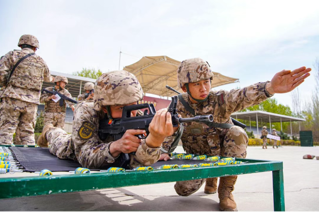 为让示范教学更精、训法更实,他们举一反三,总结出“343”进阶组训法,通过3个阶段10种训法,让示范教学有标准、有方法、有成效。运动目标射击训练场上,过关进阶、并行交叉、实景沉浸3种训法同步开展,10余种辅助训练器材精准适配教学需求,针对性解决“跟瞄慢、击发迟”“跟枪不同步”等问题,每一种训法、每一件器材,都聚焦“示范教学不够精”的短板,让学员看得懂、学得会、用得上。