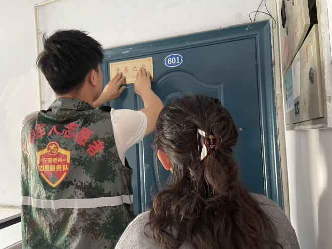 为弘扬拥军优属优良传统,褒奖优秀青年携笔从戎、矢志报国,营造 “一人成才、全家光荣” 的浓厚尊崇氛围,近日,兴庆区丽景街景墨社区退役军人服务站工作人员专程前往辖区刘女士家中,为成功考入军校的优秀青年汪梓皓家庭上门悬挂 “光荣之家” 牌匾,将党和政府的崇高荣誉与暖心关怀送到军人家庭心坎上。