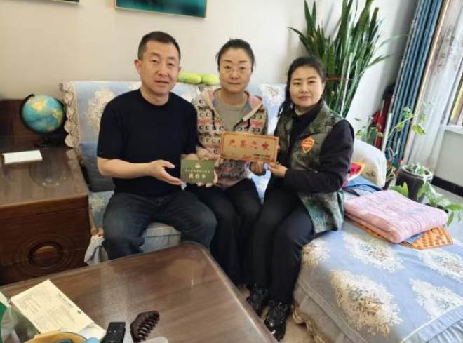 兴庆区大新镇东城人家社区为现役军人家庭送光荣牌与连心卡