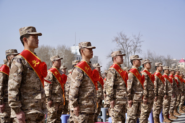 3月20日,贺兰县2026年上半年新兵欢送会在欣兰广场隆重举行。身着崭新军装、肩披鲜红绶带、胸戴大红花的新兵们整齐列队,个个精神抖擞、意气风发,他们带着家乡父老的殷切期望与美好祝福,即将奔赴军营,开启保家卫国的光荣征程。(宁夏新闻网记者 朱敏 摄)