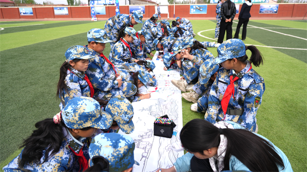 在沉浸式体验环节,航模在天空中灵活穿梭,模拟海军舰艇劈波斩浪的姿态;师生们携手提笔共绘深蓝画卷,用斑斓色彩勾勒海洋的辽阔、海军的威武;银川舰历史问询课堂上,大家认真聆听退役银川舰的光辉事迹,感悟海军将士的忠诚与坚守,厚植国防情怀。