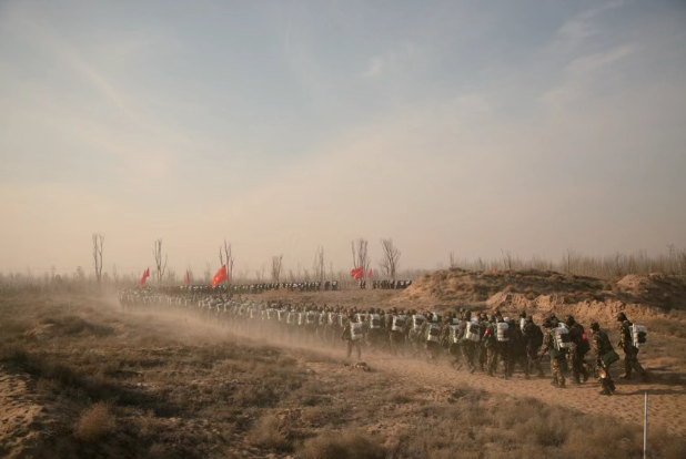 更大的考验还在后面。训练时,汗水混着灰尘在脸上冲出沟壑,嘴里、鼻孔里全是沙粒;晾在室外的衣服,半天就落上一层厚厚的灰尘;寒风刺骨,新兵们手上、耳朵上到处都是冻疮……