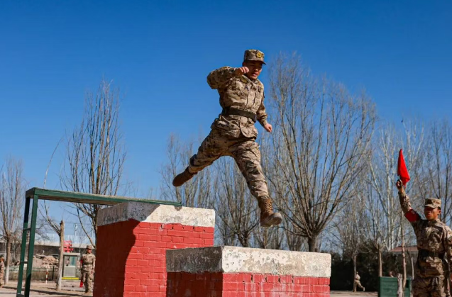 400米障碍科目考核可谓兵味浓郁、战味十足。参考人员个个摩拳擦掌、精神抖擞,飞跃矮墙、通过高地跳台、跨越壕沟……一系列动作连贯流畅、干净利索,参考人员健步如飞、奋勇向前,在极限挑战中锤炼实战本领。