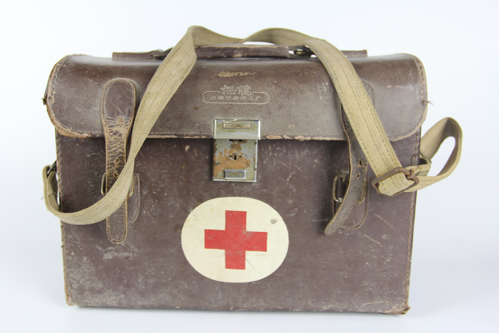 这件经历过抗日战争的红褐色皮质药箱,密布大大小小的划痕,表明这个药箱在抗战时期用了很长的时间,挽救了许许多多将士的生命。(2013年,由石嘴山市博物馆征集收藏。)